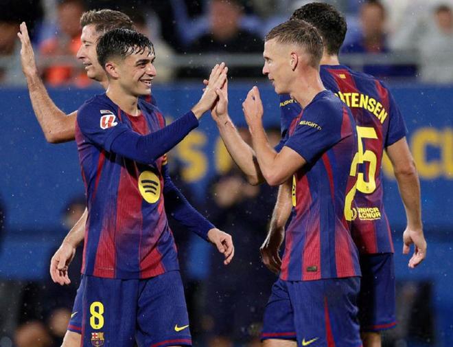 下半场再战,巴萨强大的控球率让对手绝望。第63分钟,替补出场的拉什福德在右路溜底线,下底传中,帮助奥尔莫破门,3-0。最终,巴萨3-0拿下胜利。前5轮,巴萨保持不败,4胜1平,在积分榜上排名第2,落后5连胜的皇马2分。