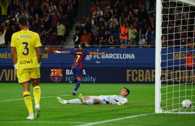 第35分钟,巴萨打反击,拉菲尼亚赶在后卫之前把球控制住,然后顺势挑传给费兰,帮助后者拿到单刀球。面对门将,费兰冷静射门得手,2-0。
