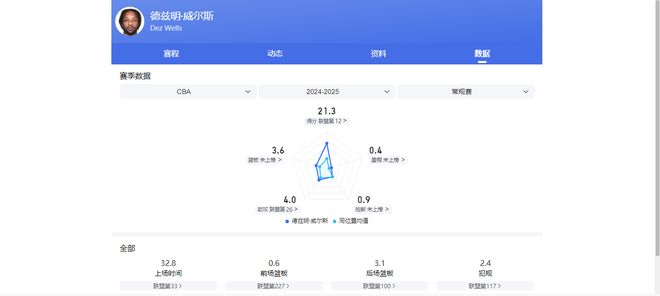 官方身高1米94,体重94公斤,上赛季场均数据为12.7分3.7篮板2助攻,投篮命中率53.7%,三分命中率26.7%。