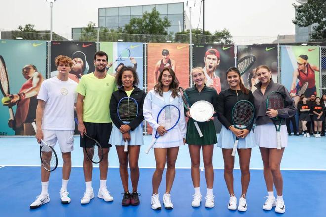 正是这份精神和态度,引燃了中国网坛新一轮的网球热潮。2025美网之后,世界网坛的焦点已经云集中国。网球中国赛季正如火如荼的在中国大地展开。9月23日,在中网公开赛开赛之际,北京三里屯的耐克旗舰店门前广场,10年前的那副画面正在被复刻。郑钦文、辛纳、大阪直美、阿尼西莫娃、卡恰诺夫、安德烈耶娃一同亮相耐克“JUST DO IT挑战杯”活动,现场星光熠熠。耐克带着一众网坛明星亮相京城,为网球中国赛季带来了最大的热情。如此近距离和网坛球星互动,这是中国网坛蓬勃发展最生动的时刻。