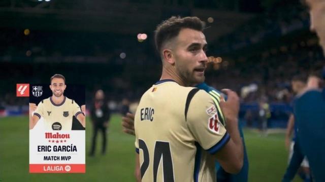 打进扳平进球,埃里克加西亚当选巴萨31客胜奥维耶多全场最佳