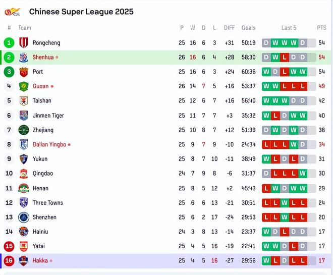 榜尾部分,海牛、亚泰和梅州客家也是同分,同样凭借相互战绩,海牛暂时在降级区外,梅州客家则是垫底。