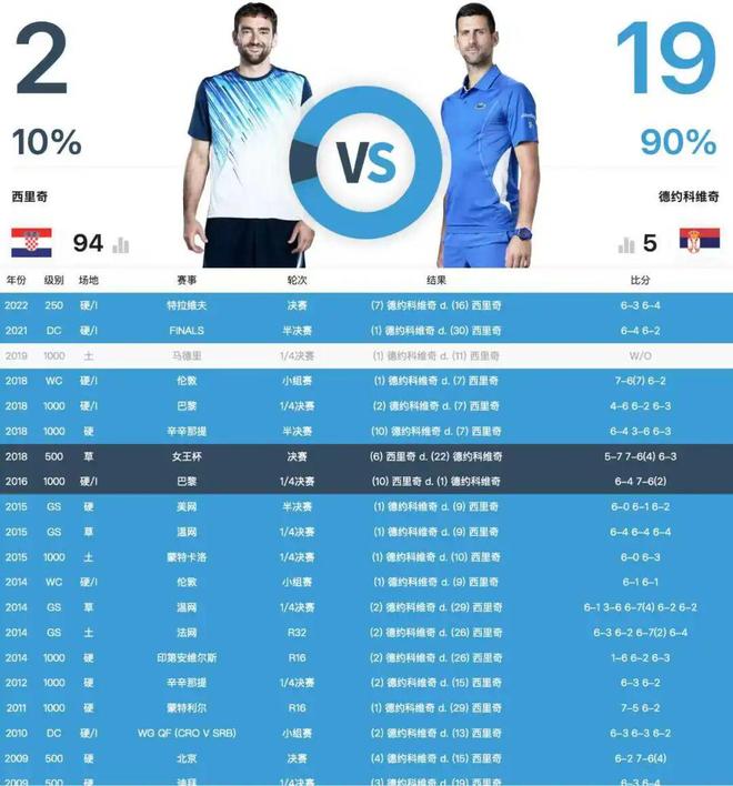 翻开他俩的交手记录,那个刺眼的“19-2”首先会给你一记视觉重拳。这不像是一场竞争,更像是一段横跨了十多年的“定点扶贫”。在故事的前半部分,德约之于西里奇,简直就是一堵会呼吸的墙。西里奇所有的武器——那势大力沉的正手、发球,在德约教科书般的防守、无解的接发和密不透风的底线面前,就像砍在了棉花上。那波14连败,尤其是在大满贯赛场上的屡战屡败,足以消磨任何天才的心气。那时的西里奇,就像个努力做题却总在关键考试中碰到超纲题的学生,而德约,就是那个出题人。