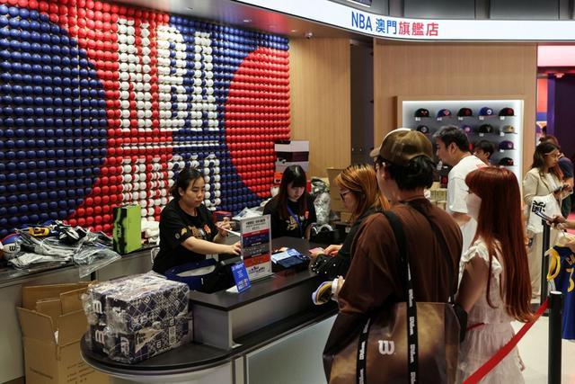 场馆周边,穿着NBA球衣的游客随处可见,不少人手持“NBA中国赛之旅”主题标识合影留念;澳门第一家NBA官方旗舰店正式开业,年轻人排队定制专属球衣的场景持续至晚间。而在昨天下午的NBA球迷日活动中,更多球迷获得了与两支球队近距离接触的机会,奥尼尔、林书豪、马布里等球星也来到现场参与互动。