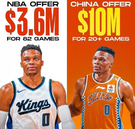 至于美媒Clutch Points报道表示,多家媒体报道过CBA给威少开出年薪1000万-1400万美元的报价。至于萨克拉门托电台主持人Dave Carmichael还表示,这份中国球队的报价合同,威少只需要打半个赛季,出场数大概在23场比赛左右,且如果帮助球队打进季后赛,薪资还能上涨。