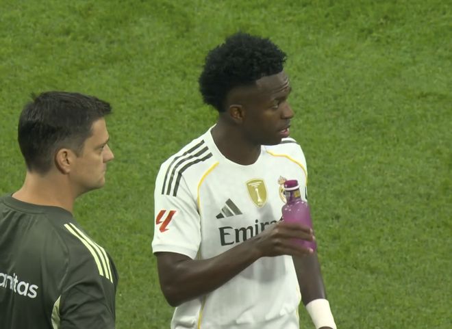 皇马主帅阿隆索在第72分钟换下维尼修斯,巴西巨星显得很吃惊,对阿隆索的换人明显不满,喋喋不休走下场,直接返回更衣室。维尼修斯本场的状态这么好,在左路威胁巨大,阿隆索将他换下场,爆发情绪是可以理解的,阿隆索的这次调整有待商榷,明星球员不是这么管理的,阿隆索太草率了。佩德里补时两黄变一红被罚下,最终,皇马2-1力克巴萨,领先巴萨5分在西甲领跑。