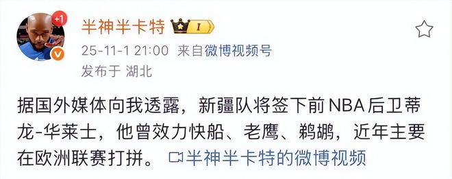 - NBA | 新疆男篮签约第四外援,1米96双能卫加盟,NBA曾场均9.7分3.5板