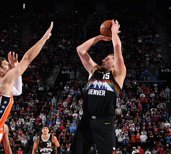 本赛季开打后,约基奇除了揭幕战表现欠佳外(三分13中2),其他比赛全部打出高效表现,他已经连续9场比赛以60%命中率砍下20分5板5助了,一举超越字母哥连续8场的NBA纪录,登顶了历史第一。约基奇本赛季场均能砍下28.8分13.1板10.9助1.8断0.7帽,命中率68.4%,场均投中1.8个三分,三分命中率41.7%,场均正负值+15.3,这样的效率在NBA历史上也是绝无仅有的。