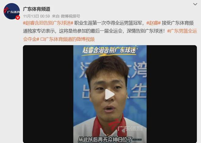 接受采访时,赵睿也强调本届全运会是自己最后一届全运会,并深情告别广东球迷。