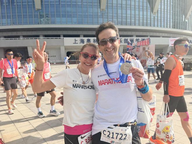 今年是63岁的瑞士跑者林金(音译)第三次来到上海,赛前,他特地去苏州游玩了三天,领略了江南韵味。而首次征战上马的他,原本对于成绩并没有太多追求,但在赛道两旁一声声呐喊助威中,他跑着跑着就燃起了斗志,以3小时37分的成绩刷新了他在中国的最好纪录。