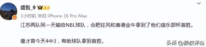 - CBA | 江苏双雄遭NBL双杀!记者:一些球队常年摆烂严重影响联赛形象
