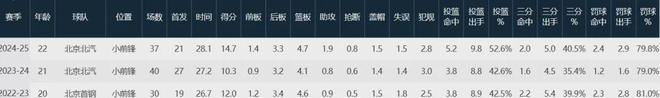 上赛季,曾凡博迎来了质的飞跃,常规赛场均14.7分4.7板1.9助1.5断,场均以40.5%命中率扔进2记三分球;季后赛场均15分4.2板1助1断1.6帽,场均以43.3%命中率扔进2.6记三分球。
