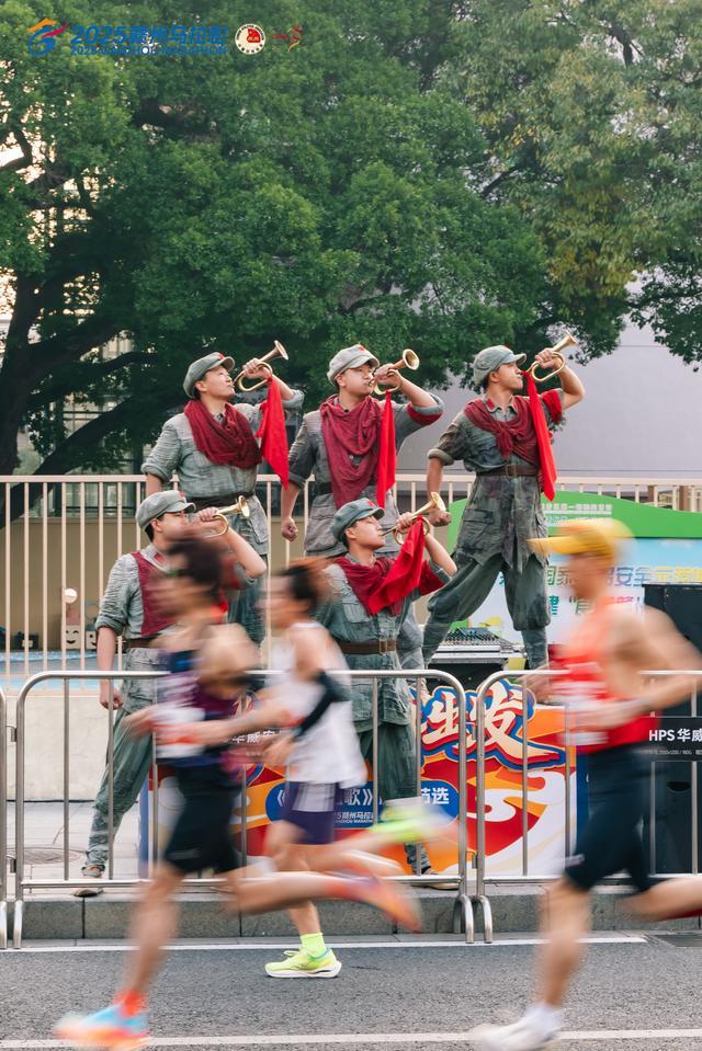 2025年,赣州继续深挖内核,将红色文化根脉与千年“江南宋城”的古韵风雅进一步融入赛事肌理。不仅在赛道约1公里处特设“红色加油站”、用冲锋号角为选手注入无穷动力,同时还在赛道沿线设置30多处加油站,将红色基因、脐橙文化与爱国情怀深度融入赛事场景,极大增强了活动的感染力与传播辨识度。