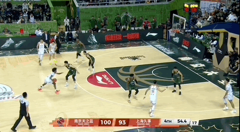 上海队前场发球,弧顶李弘权撤步三分没中,古德温拿到篮板,给弧顶李弘权,再次三分出手,命中!此后一次上海队进攻机会,古德温控球过半场,给左侧外线张镇麟,张镇麟大号三分命中,上海队通过连续三分球打进,将分差继续咬在10分左右,南京男篮叫停比赛。