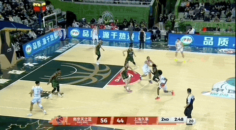 次节,郭昊文强突刘礼嘉,上篮and one,加罚命中,南京男篮38-25领先于上海队。