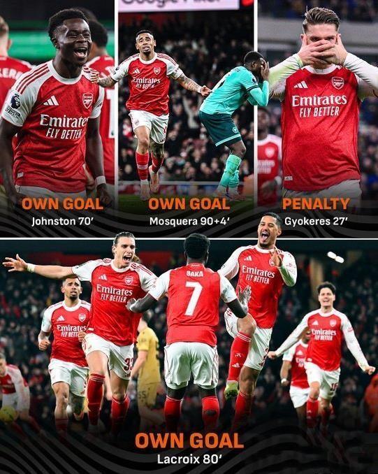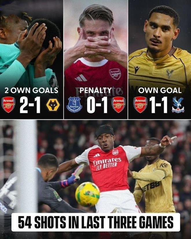 - 英超 | 乌龙依赖症!阿森纳54脚射门0运动战进球,争冠之路已经敲响警钟